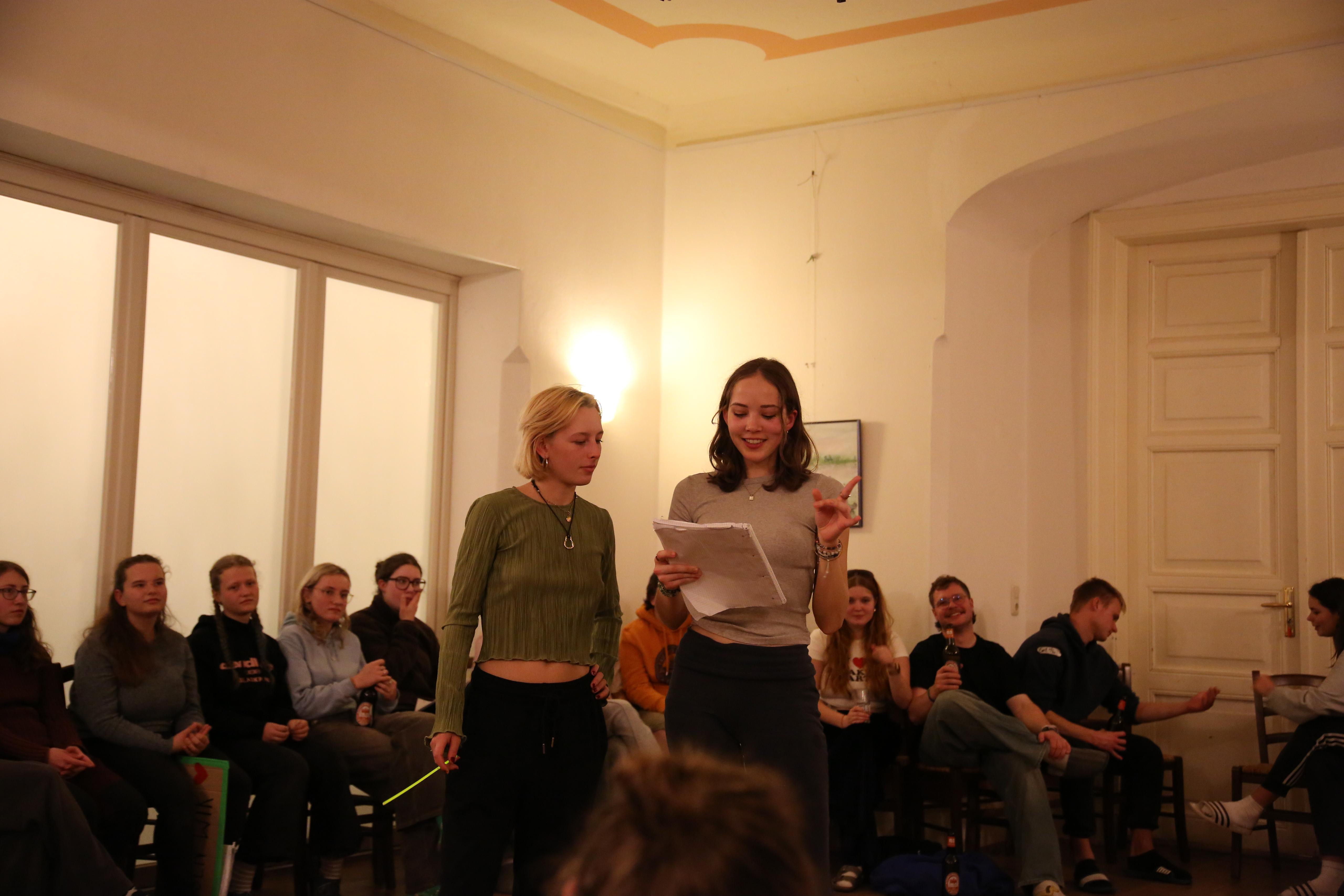 Hier habt Ihr die Gelegenheit eure Kommilitoninnen und Kommilitonen besser kennenzulernen und Freunde für´s Leben finden. Wir helfen Euch dabei mit ein paar kleinen Spielchen, sowohl drinnen als auch draußen. Manche Aufgabe mag vielleicht ein wenig Überwindung kosten, aber für alle kommt der Spaß bestimmt nicht zu kurz - ganz wie im Studium selbst.