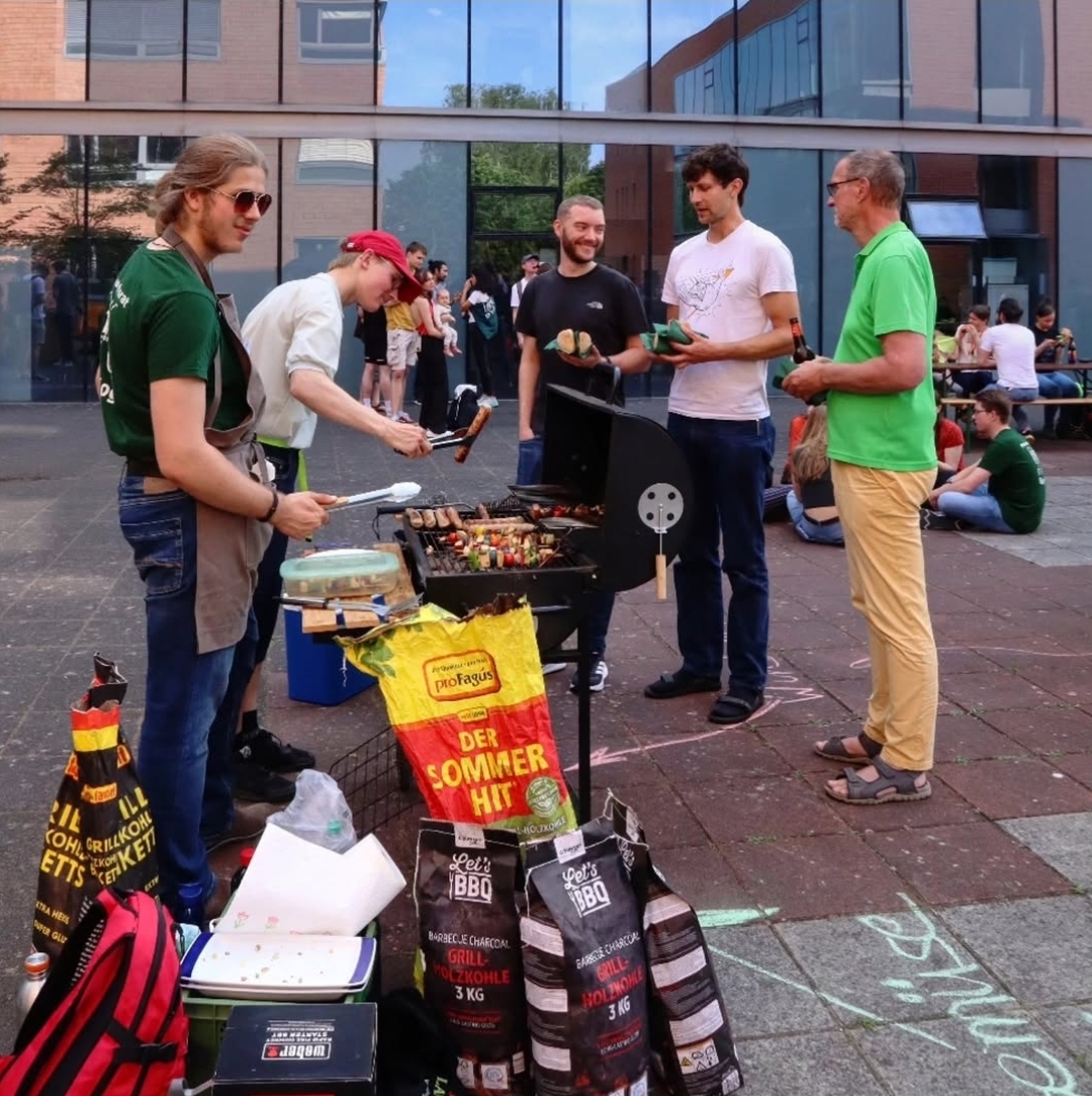 Bei uns kommen natürlich auch die Master nicht zu kurz, denn wir grillen nicht nur für die Erstis. Zu Semesterbeginn bauen wir für euch den Grill am Ulmencampus auf. Dabei ist für genügend veganes und nicht veganes Grillgut gesorgt sowie ausreichend Getränke. Diese verkaufen wir zu Studi-Preisen. Selber mitbringen braucht sich niemand was! So habt ihr die Möglichkeit auch mit Studierenden aus anderen Masterstudiengängen ins Gespräch zu kommen und eine Blick über den Tellerand zu werfen... Den genauen Termin findet ihr auf der Startseite.